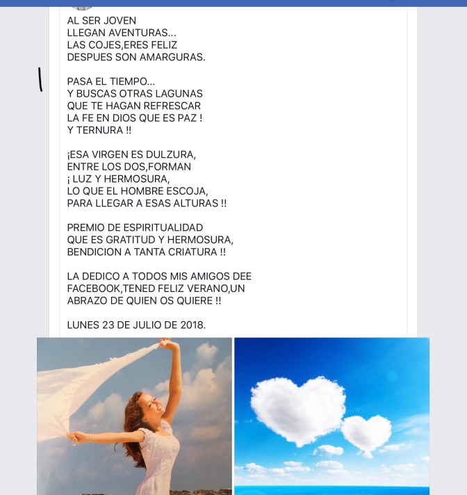 Deja un comentarios SIGUE QUE TIENES UNA TRAYECTORIA BUENA.TU JUVENTUD TE ABRIRÁ LAS PUERTAS DE ESE BOSQUE INMACULADO,DESCUBRIRÁS ESAS COSAS QUE TE VAN ALBOROTANDO Y DENTRO DE ESA PAZ,VERÁS ESE RANGO.