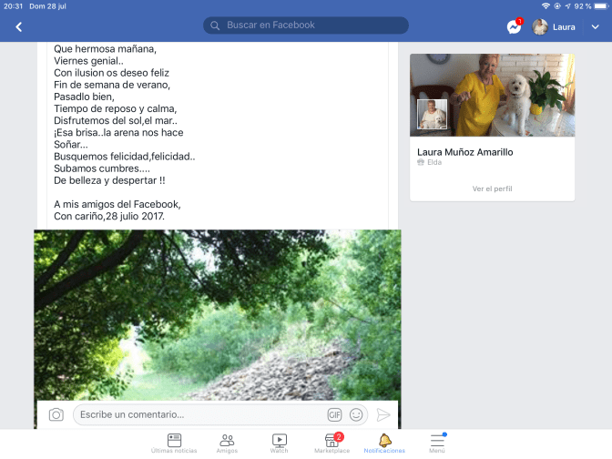 Deja un comentarios SIGUE QUE TIENES UNA TRAYECTORIA BUENA.TU JUVENTUD TE ABRIRÁ LAS PUERTAS DE ESE BOSQUE INMACULADO,DESCUBRIRÁS ESAS COSAS QUE TE VAN ALBOROTANDO Y DENTRO DE ESA PAZ,VERÁS ESE RANGO.