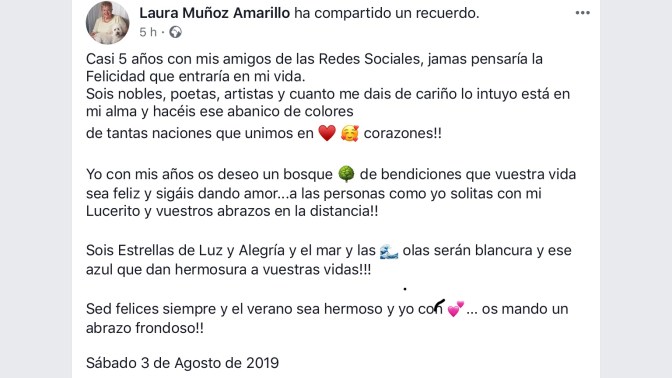 Laura Muñoz Amarillo | Poeta de poesías y sentimientos. Nací en la bella ciudad de Elda, provincia de Alicante en España un 10 de Julio de 1937 y estos son mis escritos desde el corazón.