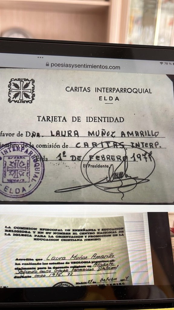 DESPUÉS LO DEJÉ Y EMPECÉ A ESTUDIAR TRES COSAS,LA MÁS IMPORTANTE FUE TEOLOGIA SUPERIOR,FUI PRESINDENTA DE CARITAS 10 AÑOS.Y REPRESENTAN DE GRÁFICAS.Y EL FINAL FUI LA PRIMERA MUJER REPRESENTE DE CALZADO,ESO ERA PARA LOS HOMBRES.ESTUVE POR TODA ESPAÑA 5 AÑOS TRABAJANDO CON MUCHO EXSITO.